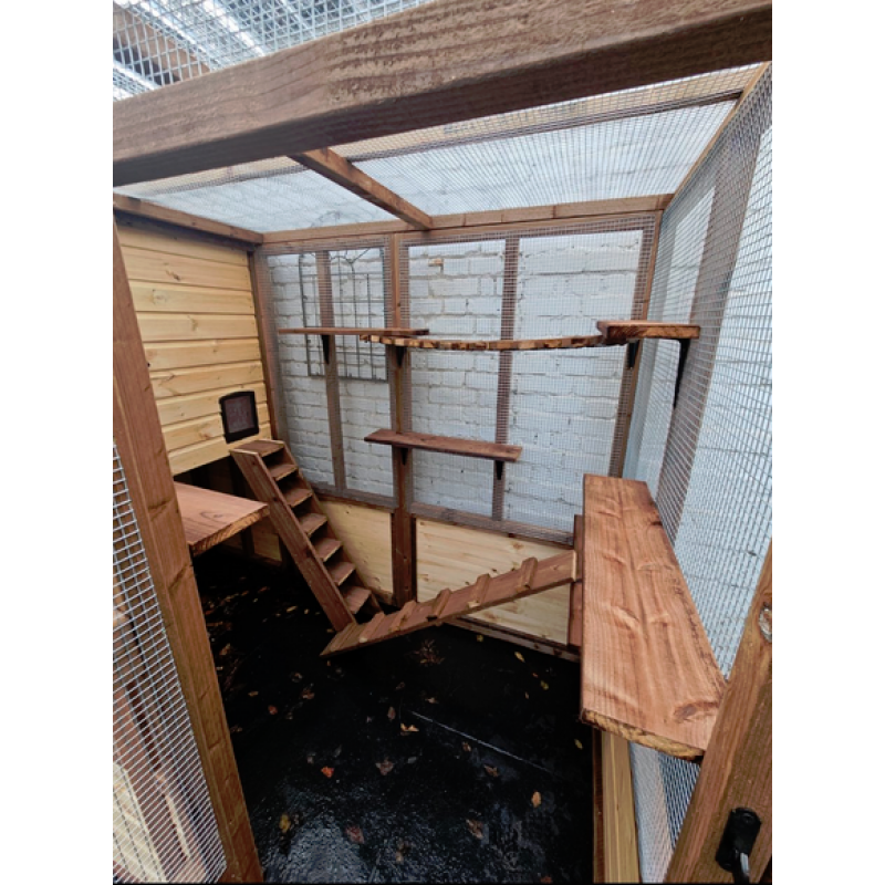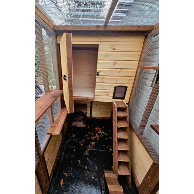 Luxury Cat Run With Raised Sleeping Box 4ft x 8ft